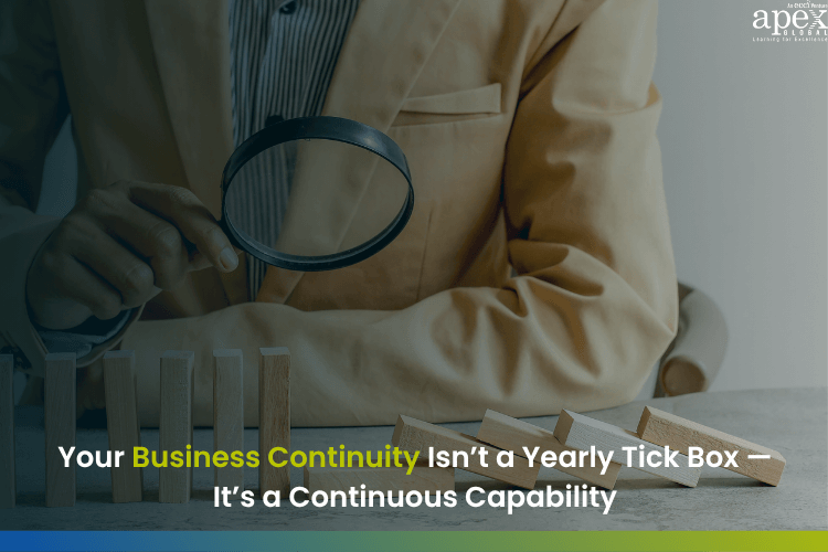 In a region where operations are regularly tested by natural calamities, infrastructure challenges, and fast-changing business environments, a once-a-year review simply doesn’t suffice. Business continuity today must evolve into a continuous capability — one that adapts as quickly as risks change.