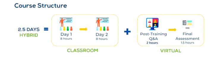 The course will be delivered over 2.5 days in a hybrid format, combining classroom sessions with virtual components. The first two days will be delivered in a face-to-face setup followed by a dedicated post-training Q&A virtual session for further review and clarifications.